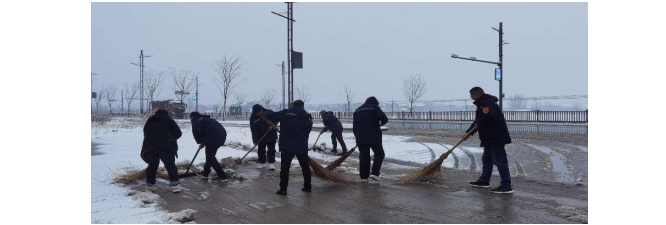 近期淮安突降大雪,為防范降雪冰凍對(duì)公司生產(chǎn)、交通運(yùn)輸及周邊群眾帶來(lái)不利影響。2月4日下午,井鹽公司組織員工對(duì)單位周邊道路清雪除冰。